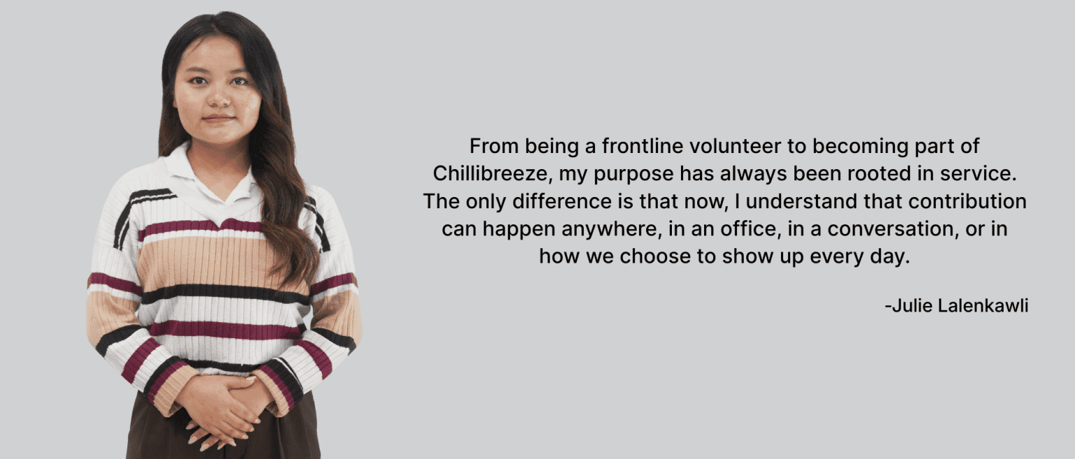 From being a frontline volunteer to becoming part of Chillibreeze, my purpose has always been rooted in service. The only difference is that now, I understand that contribution can happen anywhere, in an office, in a conversation, or in how we choose to show up every day.