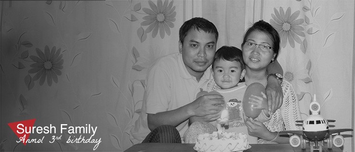 Anmol with parents on his 3rd birthday.