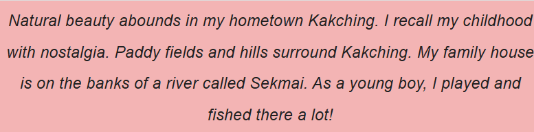 I was born and brought up in a small town called Kakching in the State of Manipur.