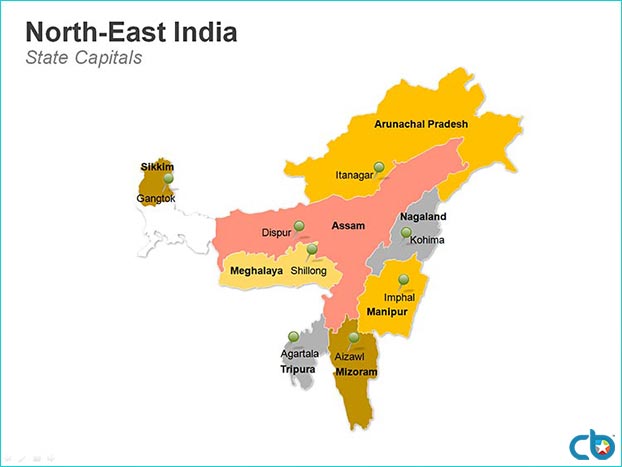 Map of the Seven Sister States in NE India