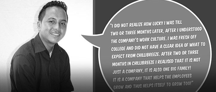 I did not have any work experience, but I was ready to find a job and put my academic learnings to practice. I applied to Chillibreeze that very same day through their online job form and did an online test too. I went through an interview process and was called to join Chillibreeze as a trainee.