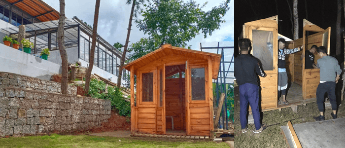 (Dismantlable wooden sheds we use for our field projects. Suppliers of wood for this project learned the design and now help us innovate.)