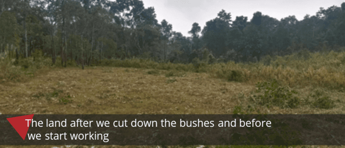 This is the barren land Zizira had leased. Wild and overgrown before the team began to clean it.