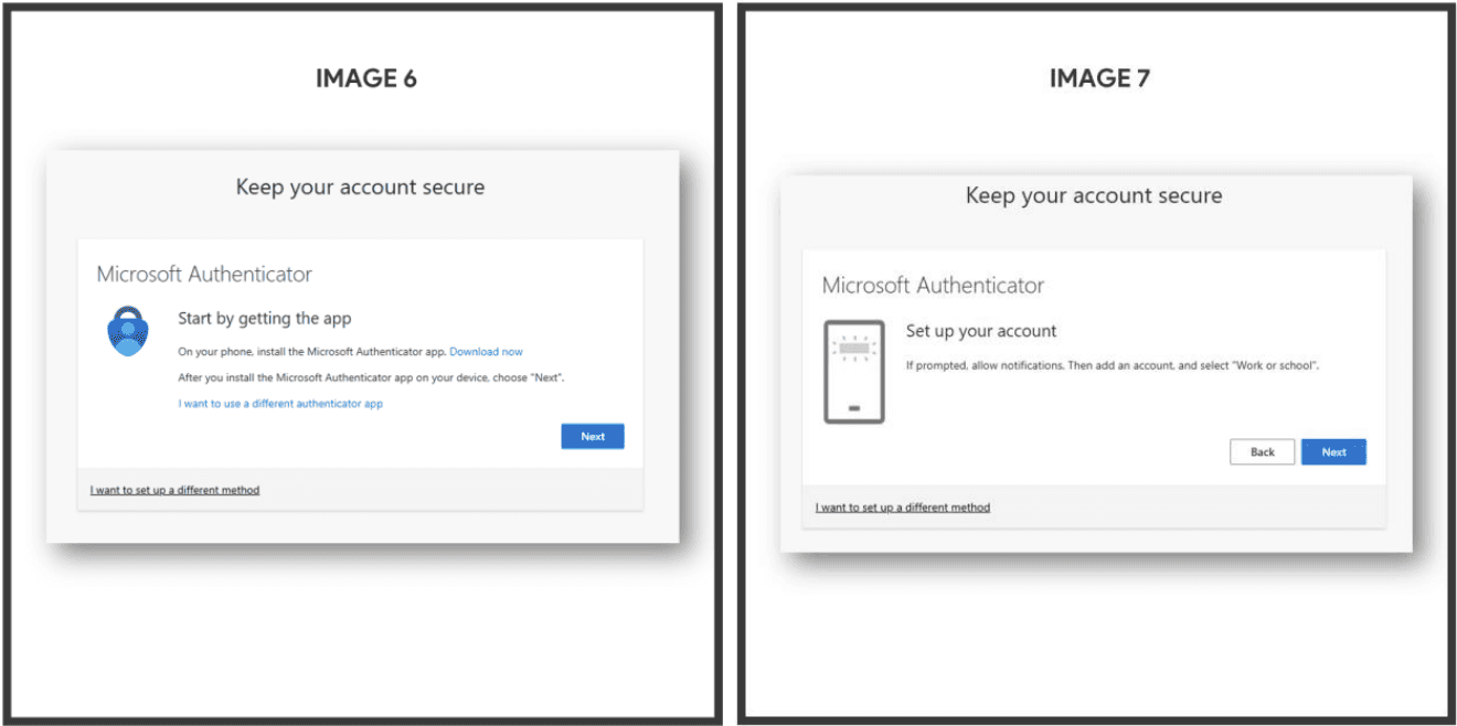 You will now be asked to set up MFA. Click Next to proceed. As shown in Image 6 & Image 7.