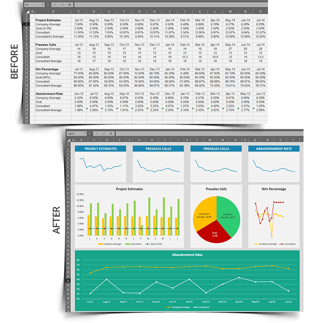 A boring spreadsheet can be spruced up by strategic use of your company’s brand colors, bringing in customized icons to depict different data streams, optimizing row and column sizes for a comfortable user experience and much more.